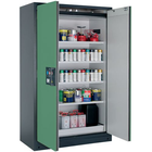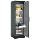 Veilige opslag, voldoet aan de geldende regelgeving voor gevaarlijke, ontvlambare producten in werkruimtes Stevige constructie aan de buitenzijde van brandwerende platen met een coating van melaminehars Volledig sluitmechanisme en beveiligingselementen ter bescherming tegen corrosie, gemonteerd buiten de opslagruimte Hoogwaardige deur, krasbestendig, met gestructureerd oppervlak met epoxy-coating Optimale zichtbaarheid: groot glazen oppervlak voor snel en eenvoudig overzicht van de containers - zonder de deur te openen Ergonomisch: de deur blijft in de stand staan bij het openen, automatische sluiting in geval van brand Gecontroleerd gebruik: vergrendelbare deur, compatibel met centrale vergrendeling Eenvoudig transport: geïntegreerde transportsokkel, eenvoudig afgewerkte plint of plint met 4 nivelleringsvoeten optioneel beschikbaar Beluchting/ontluchting: geïntegreerd beluchtings- en ventilatiesysteem voor aansluiting (diameter 75 mm) op een technisch luchtafvoersysteem Let op: wij raden aan om naast de kast ook de plint met verstelinrichting te bestellen. Hierdoor is het mogelijk om snel en veilig kleine oneffenheden in de vloer op te vangen, zodat de kast eenvoudig en zonder veel moeite kan worden versteld. Voor de technische ventilatie van de kast adviseren wij de ventilatiebox met geïntegreerde filtratie (zonder gaten in de muren te boren of afvoerleidingen naar buiten).