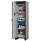 Veilige opslag, voldoet aan de geldende regelgeving voor gevaarlijke, ontvlambare producten in werkruimtes Robuust en duurzaam: stevige stalen constructie aan de buitenzijde van brandwerende platen bekleed met melaminehars 3 bevestigingingsscharnieren per deur volledig sluitmechanisme en beveiligingselementen ter bescherming tegen corrosie, gemonteerd buiten de opslagruimte hoogwaardige deur, krasbestendig, met gestructureerd oppervlak met epoxy-coating Ergonomisch: de deur blijft in de stand staan bij het openen, automatische sluiting in geval van brand Gecontroleerd gebruik: vergrendelbare deur, compatibel met centrale vergrendeling Eenvoudig transport: geïntegreerde transportsokkel, eenvoudig afgewerkte plint of plint met 4 nivelleringsvoeten optioneel beschikbaar Beluchting/ontluchting: geïntegreerd beluchtings- en ventilatiesysteem voor aansluiting (diameter 75 mm) op een technisch luchtafvoersysteem Getest en gecertificeerd conform de Amerikaanse norm FM 6050 Let op: wij raden aan om naast de kast ook de plint met verstelinrichting te bestellen. Hierdoor is het mogelijk om snel en veilig kleine oneffenheden in de vloer op te vangen, zodat de kast eenvoudig en zonder veel moeite kan worden versteld. Voor de technische ventilatie van de kast adviseren wij de ventilatiebox met geïntegreerde filtratie (zonder gaten in de muren te boren of afvoerleidingen naar buiten).