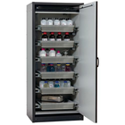 Veilige opslag, voldoet aan de geldende regelgeving voor gevaarlijke, ontvlambare producten in werkruimtes Robuust en duurzaam: stevige constructie aan de buitenzijde van brandwerende platen met een coating van melaminehars 3 bevestigingsscharnieren per deur, volledig sluitmechanisme en beveiligingselementen ter bescherming tegen corrosie, gemonteerd buiten de opslagruimte hoogwaardige deur, krasbestendig, met gestructureerd oppervlak met epoxy-coating Ergonomisch: de deur blijft in de stand staan bij het openen, automatische sluiting in geval van brand Gecontroleerd gebruik: vergrendelbare deur, compatibel met centrale vergrendeling Eenvoudig transport: geïntegreerde transportsokkel, eenvoudig afgewerkte plint of plint met 4 nivelleringsvoeten optioneel beschikbaar Beluchting en ontluchting: ingebouwd beluchtings- en ventilatiesysteem voor aansluiting (diameter 75 mm) op een technisch luchtafvoersysteem Getest en gecertificeerd conform de Amerikaanse norm FM 6050 Let op: wij raden aan om naast de kast ook de plint met verstelinrichting te bestellen. Hierdoor is het mogelijk om snel en veilig kleine oneffenheden in de vloer op te vangen, zodat de kast eenvoudig en zonder veel moeite kan worden versteld. Voor de technische ventilatie van de kast adviseren wij de ventilatiebox met geïntegreerde filtratie (zonder gaten in de muren te boren of afvoerleidingen naar buiten).