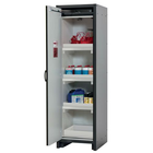 Veilige opslag, voldoet aan de geldende regelgeving voor gevaarlijke, ontvlambare producten in werkruimten Robuust en duurzaam: Stevige constructie aan de buitenzijde van brandwerende platen met een coating van melaminehars 3 bevestigingsscharnieren per deur, volledig sluitmechanisme en beveiligingselementen ter bescherming tegen corrosie, gemonteerd buiten de opslagruimte hoogwaardige deur, krasbestendig, met gestructureerd oppervlak met epoxy-coating Ergonomisch: de deur blijft in de stand staan bij het openen, automatische sluiting in geval van brand Gecontroleerd gebruik: vergrendelbare deur, compatibel met centrale vergrendeling Eenvoudig transport: geïntegreerde transportsokkel, eenvoudig afgewerkte plint of plint met 4 nivelleringsvoeten optioneel beschikbaar Beluchting en ontluchting: ingebouwd beluchtings- en ventilatiesysteem voor aansluiting (diameter 75 mm) op een technisch luchtafvoersysteem Getest en gecertificeerd conform de Amerikaanse norm FM 6050 Let op: wij raden aan om naast de kast ook de plint met verstelinrichting te bestellen. Hierdoor is het mogelijk om snel en veilig kleine oneffenheden in de vloer op te vangen, zodat de kast eenvoudig en zonder veel moeite kan worden versteld. Voor de technische ventilatie van de kast adviseren wij de ventilatiebox met geïntegreerde filtratie (zonder gaten in de muren te boren of afvoerleidingen naar buiten).
