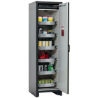 Veilige opslag, voldoet aan de geldende regelgeving voor gevaarlijke, ontvlambare producten in werkruimtes Robuust en duurzaam: stevige constructie aan de buitenzijde van brandwerende platen met een coating van melaminehars 3 bevestigingsscharnieren per deur, volledig sluitmechanisme en beveiligingselementen ter bescherming tegen corrosie, gemonteerd buiten de opslagruimte hoogwaardige deur, krasbestendig, met gestructureerd oppervlak met epoxy-coating Ergonomisch: de deur blijft in de stand staan bij het openen, automatische sluiting in geval van brand Gecontroleerd gebruik: vergrendelbare deur, compatibel met centrale vergrendeling Eenvoudig transport: geïntegreerde transportsokkel, eenvoudig afgewerkte plint of plint met 4 nivelleringsvoeten optioneel beschikbaar Beluchting en ontluchting: ingebouwd beluchtings- en ventilatiesysteem voor aansluiting (diameter 75 mm) op een technisch luchtafvoersysteem Getest en gecertificeerd conform de Amerikaanse norm FM 6050 Let op: wij raden aan om naast de kast ook de plint met verstelinrichting te bestellen. Hierdoor is het mogelijk om snel en veilig kleine oneffenheden in de vloer op te vangen, zodat de kast eenvoudig en zonder veel moeite kan worden versteld. Voor de technische ventilatie van de kast adviseren wij de ventilatiebox met geïntegreerde filtratie (zonder gaten in de muren te boren of afvoerleidingen naar buiten).