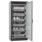Veilige opslag, voldoet aan de geldende regelgeving voor gevaarlijke, ontvlambare producten in werkruimten Robuust en duurzaam: Stevige constructie aan de buitenzijde van brandwerende platen met een coating van melaminehars 3 bevestigingsscharnieren per deur, volledig sluitmechanisme en beveiligingselementen ter bescherming tegen corrosie, gemonteerd buiten de opslagruimte hoogwaardige deur, Krasbestendig, met gestructureerd oppervlak met epoxy-coating Ergonomisch: de deur blijft in de stand staan bij het openen, automatische sluiting in geval van brand Gecontroleerd gebruik: vergrendelbare deur, compatibel met centrale vergrendeling Eenvoudig transport: geïntegreerde transportsokkel, eenvoudig afgewerkte plint of plint met 4 nivelleringsvoeten optioneel beschikbaar Beluchting en ontluchting: ingebouwd beluchtings- en ventilatiesysteem voor aansluiting (diameter 75 mm) op een technisch luchtafvoersysteem Getest en gecertificeerd conform de Amerikaanse norm FM 6050 Let op: wij raden aan om naast de kast ook de plint met verstelinrichting te bestellen. Hierdoor is het mogelijk om snel en veilig kleine oneffenheden in de vloer op te vangen, zodat de kast eenvoudig en zonder veel moeite kan worden versteld. Voor de technische ventilatie van de kast adviseren wij de ventilatiebox met geïntegreerde filtratie (zonder gaten in de muren te boren of afvoerleidingen naar buiten).