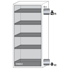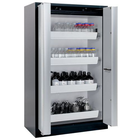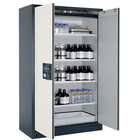 Veilige opslag, voldoet aan de geldende regelgeving voor gevaarlijke, ontvlambare producten in werkruimten Robuust en duurzaam: Stevige constructie aan de buitenzijde van brandwerende platen met een coating van melaminehars 3 bevestigingsscharnieren per deur, volledig sluitmechanisme en beveiligingselementen ter bescherming tegen corrosie, gemonteerd buiten de opslagruimte hoogwaardige deur, Krasbestendig, met gestructureerd oppervlak met epoxy-coating Ergonomisch: de deur blijft in de stand staan bij het openen, automatische sluiting in geval van brand Gecontroleerd gebruik: vergrendelbare deur, compatibel met centrale vergrendeling Eenvoudig transport: geïntegreerde transportsokkel, eenvoudig afgewerkte plint of plint met 4 nivelleringsvoeten optioneel beschikbaar Beluchting en ontluchting: ingebouwd beluchtings- en ventilatiesysteem voor aansluiting (diameter 75 mm) op een technisch luchtafvoersysteem Getest en gecertificeerd conform de Amerikaanse norm FM 6050 Let op: wij raden aan om naast de kast ook de plint met verstelinrichting te bestellen. Hierdoor is het mogelijk om snel en veilig kleine oneffenheden in de vloer op te vangen, zodat de kast eenvoudig en zonder veel moeite kan worden versteld. Voor de technische ventilatie van de kast adviseren wij de ventilatiebox met geïntegreerde filtratie (zonder gaten in de muren te boren of afvoerleidingen naar buiten).