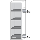 Veilige opslag, voldoet aan de geldende regelgeving voor gevaarlijke, ontvlambare producten in werkruimten Robuust en duurzaam: Stevige constructie aan de buitenzijde van brandwerende platen met een coating van melaminehars 3 bevestigingsscharnieren per deur, volledig sluitmechanisme en beveiligingselementen ter bescherming tegen corrosie, gemonteerd buiten de opslagruimte hoogwaardige deur, Krasbestendig, met gestructureerd oppervlak met epoxy-coating Ergonomisch: de deur blijft in de stand staan bij het openen, automatische sluiting in geval van brand Gecontroleerd gebruik: vergrendelbare deur, compatibel met centrale vergrendeling Eenvoudig transport: geïntegreerde transportsokkel, eenvoudig afgewerkte plint of plint met 4 nivelleringsvoeten optioneel beschikbaar Beluchting en ontluchting: ingebouwd beluchtings- en ventilatiesysteem voor aansluiting (diameter 75 mm) op een technisch luchtafvoersysteem Getest en gecertificeerd conform de Amerikaanse norm FM 6050 Let op: wij raden aan om naast de kast ook de plint met verstelinrichting te bestellen. Hierdoor is het mogelijk om snel en veilig kleine oneffenheden in de vloer op te vangen, zodat de kast eenvoudig en zonder veel moeite kan worden versteld. Voor de technische ventilatie van de kast adviseren wij de ventilatiebox met geïntegreerde filtratie (zonder gaten in de muren te boren of afvoerleidingen naar buiten).