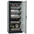 Veilige opslag, voldoet aan de geldende regelgeving voor gevaarlijke, ontvlambare producten in werkruimten Robuust en duurzaam: Stevige constructie aan de buitenzijde van brandwerende platen met een coating van melaminehars 3 bevestigingsscharnieren per deur, volledig sluitmechanisme en beveiligingselementen ter bescherming tegen corrosie, gemonteerd buiten de opslagruimte hoogwaardige deur, krasbestendig, met gestructureerd oppervlak met epoxy-coating Ergonomisch: de deur blijft in de stand staan bij het openen, automatische sluiting in geval van brand Gecontroleerd gebruik: vergrendelbare deur, compatibel met centrale vergrendeling Eenvoudig transport: geïntegreerde transportsokkel, eenvoudig afgewerkte plint of plint met 4 nivelleringsvoeten optioneel beschikbaar Beluchting en ontluchting: ingebouwd beluchtings- en ventilatiesysteem voor aansluiting (diameter 75 mm) op een technisch luchtafvoersysteem Getest en gecertificeerd conform de Amerikaanse norm FM 6050 Let op: wij raden aan om naast de kast ook de plint met verstelinrichting te bestellen. Hierdoor is het mogelijk om snel en veilig kleine oneffenheden in de vloer op te vangen, zodat de kast eenvoudig en zonder veel moeite kan worden versteld. Voor de technische ventilatie van de kast adviseren wij de ventilatiebox met geïntegreerde filtratie (zonder gaten in de muren te boren of afvoerleidingen naar buiten).