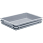 Euronormbak, Totale inhoud: 6 L, Stapelbaar: ja, Totale hoogte: 65 mm, Totale breedte: 300 mm, Totale lengte: 400 mm, Euronorm-bak inhoud (Reeks): Small (1 - 20 L), Type zijkant: Gesloten, Gebruik voor voedsel: ja, Bak kleur: Grijs, Model: RK 064, Type bodem: Gesloten, Max. belasting: 10 kg, Max. statisch stapelvermogen: 200 kg, Materiaal: Polypropyleen, Afmeting: Klein, Nuttige breedte: 258 mm, Recyclebaar product: Ja - 100%, Min. gebruikstemperatuur: -20 °C, Max. gebruikstemperatuur: 80 °C, Gebruik: Opslaan, Nuttige hoogte: 62 mm, Nuttige lengte: 358 mm