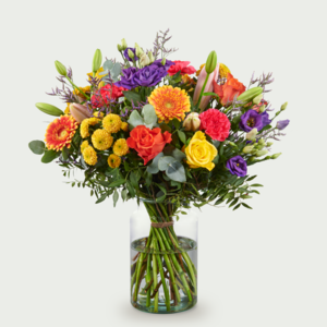 Een regenboog aan kleuren is te zien in Boeket Ruby! Dit bonte boeket is verrassend veelzijdig en staat prachtig in ieder interieur. Verras familie, vrienden of jezelf want bloemen houden van mensen.