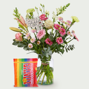 Voor wie gek is op bloemen én chocolade is Boeket Mia met Tiny Tony's een zeer geschikt cadeau.