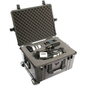 Waterdichte zwarte beschermkoffer-trolley Peli Case 1620 - waterdicht, schokbestendig en stofdicht. Voorzien van 4 stevige wielen van polyurethaan met kogellagers van roestvrij staal. Binnenkant met open cellen met stevige wand - sterk en licht.