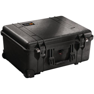 Waterdichte koffer-trolley met vakken Peli, Totale inhoud: 469 L, Max. belasting: 52 kg, Waterdicht: ja, Totale hoogte: 265 mm, Totale breedte: 455 mm, Totale lengte: 560 mm, Gewicht: 9.07 kg, Soort opbergmeubel: Gereedschapskoffer, Kleur: Zwart, Model: Met trolley, met vakken, Type nr.: Peli 1560, Materiaal: Polypropyleen, Nuttige lengte: 517 mm, Nuttige breedte: 392 mm, Nuttige hoogte: 229 mm