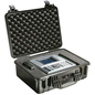 Waterdichte zwarte beschermkoffer Peli Case 1520 - waterdicht, schokbestendig en stofdicht. Binnenkant met open cellen met stevige wand, sterk en licht. Klep voor het automatisch balanceren van de luchtdruk. Comfortabele handgrepen van gegoten rubber.