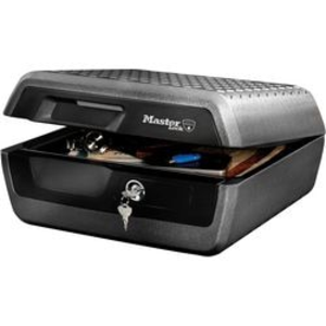 Master Lock veiligheidskluis LCFW30100. Vergrendelbaar: Ja. Brandvertraging: Ja. Hangslot: nee. Sluitmechanisme: Sleutel. Capaciteit: 10 L. Afmetingen: 193 x 419 x 375 mm (h x b x d). Kleur: Zwart. Aantal: 1 stuk.