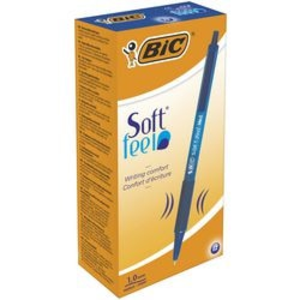 Bic Balpen Soft Feel. Dit vernieuwd model balpen met drukknop is voorzien van een prettig aanvoelende kunststof houder met extra grip en clip. Tevens is de houder uitgevoerd in schrijfkleur en is navulbaar. Punt: medium. Lijnbreedte: 0,5 mm. Kleur: blauw. Pak: 12 stuks.