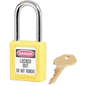 Veiligheidshangslot, Kleur: Geel, Breedte: 38 mm, Hoogte: 4.4 cm, Beugel Ø: 6 mm, Materiaal: Thermoplastisch elastomeer (TPE), Handgreep materiaal: Staal