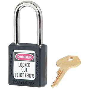 Veiligheidshangslot, Kleur: Zwart, Breedte: 38 mm, Hoogte: 4.4 cm, Beugel Ø: 6 mm, Materiaal: Thermoplastisch elastomeer (TPE), Handgreep materiaal: Staal