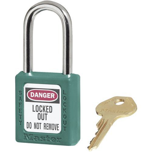 Veiligheidshangslot, Kleur: Turquoise, Breedte: 38 mm, Hoogte: 4.4 cm, Beugel Ø: 6 mm, Materiaal: Thermoplastisch elastomeer (TPE), Handgreep materiaal: Staal