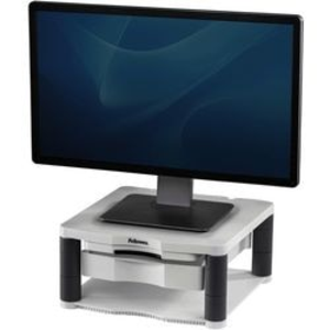 Fellowes plus monitorstandaard. Materiaal: kunststof. Hoogteverstelbaar: ja. Draaggewicht: 36 kg. Geschikt voor: monitors tot 21 inch. Kleur: grijs, zwart.