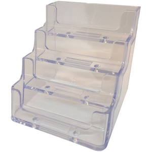 Visitekaartjeshouder, 4 vakken, Aantal hoesjes: 4, Type kaarthouder: Folderstandaard, Lengte: 9.9 cm, Breedte: 9.5 cm, Hoogte: 11.3 cm, Kleur: Transparant, Materiaal: Polystyreen