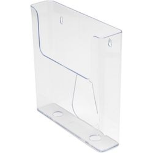Deflecto wandgemonteerde Brochurehouder De76301. Capaciteit: A5. Materiaal: Acryl. Montagemethode: Wandmontage. Aantal Compartimenten: 1. Afmetingen (H x B x D): 179 x 169 x 42 mm. Kleur: Transparant.