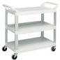 Plateauwagen kunststof 3 plateaus, Max. belasting: 135 kg, Totale hoogte: 960 mm, Totale breedte: 508 mm, Totale lengte: 1032 mm, Aantal plateaus: 3, Max. belasting per afdekplaat: 45 kg, Kleur: Wit, Zwenkwiel Ø: 102 mm, Onderstel materiaal: Metaal, Plateau materiaal: Polypropyleen, Gewicht: 19.7 kg, Wiel loopvlak: Rubber, Type wiel: Zwenkwielen