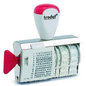 Trodat klassieke handstempel 1117. Deze datum stempel is tevens voorzien met 12 courante standaardteksten. Deze kunt u wijzigen met de kunststof raderen. Teksten: Verzonden, Beantwoord, Gecontroleerd, Behandeld, Ingekomen, Ontvangen, Credit-Nota, Betaald p. Giro, Betaald p. Bank, Betaald p. Kas, Aangemaand, Afgegeven. Afdrukhoogte: 4 mm. Taal: NL.