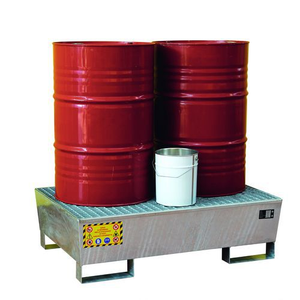 Lekbak staal gegalvaniseerd, Vermogen (aantal vaten): 2, Roostermat: ja, Inhoud opvangbak: 214 L