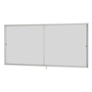 Binnenvitrine met schuifdeuren, Aantal vellen A4: 14, Lean Management: ja, Bodem materiaal: Staal, Magnetisch: ja, Deurmateriaal: Plexiglas, Deur openingstype: Schuifdeur, Aantal deuren: 2, Hoogte: 68 cm, Breedte: 160 cm, Nuttige dikte: 1 cm, Totale dikte: 3.4 cm, Type: Deur van plexiglas, Kleur: Grijs, Lijst materiaal: Aluminium, Gebruiksomgeving: Binnen, Recyclebare verpakking: Ja - 100%