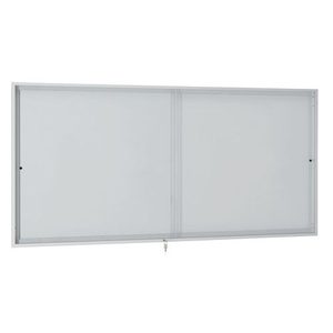 Binnenvitrine met schuifdeuren, Aantal vellen A4: 18, Lean Management: ja, Bodem materiaal: Staal, Magnetisch: ja, Deurmateriaal: Plexiglas, Deur openingstype: Schuifdeur, Aantal deuren: 2, Hoogte: 68 cm, Breedte: 200 cm, Nuttige dikte: 1 cm, Totale dikte: 3.4 cm, Type: Deur van plexiglas, Kleur: Grijs, Lijst materiaal: Aluminium, Gebruiksomgeving: Binnen, Recyclebare verpakking: Ja - 100%