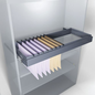 Telescopisch onderstel met kantelbeveiliging. Ideaal voor het opbergen van hangmappen.