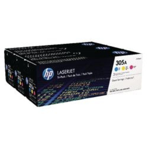 HP tonercartridge CF370AM 305A. Deze tonercartridge is geschikt voor de volgende HP printers: LaserJet Pro 300 color MFP M375nw, 400 color M451dn, 400 color M451dw, 400 color M451nw, 400 color MFP M475dn, 400 color MFP M475dw. Tevens beschikt deze over een capaciteit van circa 2.600 paginas bij 5% dekking. Kleur: Cyaan, magenta, geel. Hoeveelheid: Pak 3 stuks.