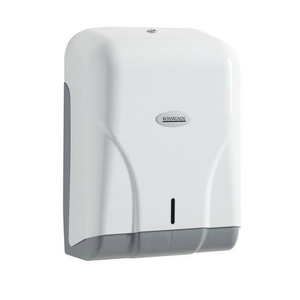 Universele ABS Dispenser, Kleur: Wit, Hoogte: 375 mm, Breedte: 280 mm, Diepte: 130 mm, Vermogen (aantal handdoeken): 400, Materiaal: Kunststof, Type: Standaard dispenser