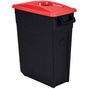 Afvalbak Movatri 65 l, Totale inhoud: 65 L, Opening: Gleuf, Materiaal: Kunststof, Vuilnisbak inhoud (Reeks): Gemiddelde (11 - 90 L), Body kleur: Zwart, Kleur: Rood, Deksel kleur: Rood, Lean Management: nee, Afvalbak voor voedingsmiddelen: nee, Recyclebare verpakking: Ja - 100%, Gerecyclede verpakkingen: 50 %, Recyclebaar product: Ja - 100%, Gerecycled product: 75 %, Eco-verantwoordelijke aanpak: ja, Type: Afvalbak