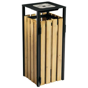 Staal met corrosiewerende behandeling en anti-uv-coating Latjes in harshoudend hout met autoclaafbehandeling, met 'klasse 4'-certificering (vergt geen onderhoud) Peukenrooster in geborsteld roestvrij staal AISI 304 (18/10) Antivandalisme: vergrendeling met slot en sleutel Weerstand tegen uittrekken Toebehoren: bevestigingsvoet van gegalvaniseerd staal (ref. A371453)
