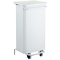 Mobiele gft-afvalbak met pedaal, Totale inhoud: 110 L, Opening: Met pedaal, Materiaal: Metaal, Vuilnisbak inhoud (Reeks): Groot (+ 90 L), Afvalbak voor voedingsmiddelen: ja, Kleur: Wit, Model: Standaard, Hoogte: 96 cm, Breedte: 42 cm, Lengte: 45.5 cm, Materiaal: Staal, Type: Mobiele afvalbak, Aantal wielen: 2, Diameter wiel: 95 mm, Type: Afvalbak voor voedingsmiddelen, Recyclebare verpakking: Ja - 100%, Gerecyclede verpakkingen: 50 %, Recyclebaar product: Ja - 100%, Gerecycled product: 75 %, Eco-verantwoordelijke aanpak: ja, Afwerking: Met UV-bestendige poedercoating, Gescheiden afvalinzameling: ja, Vorm: Vierkant, HACCP: ja, Gebruik voor voedsel: ja