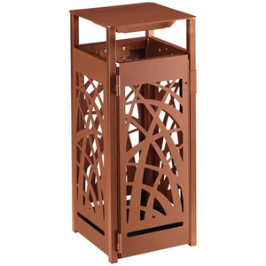 Cybel een nieuwe reeks met een hedendaagse vorm. Staal met corrosiewerende behandeling en anti-uv-coating Vergrendeling met slot Geïntegreerde zakhouder Zijkanten en top van corten-effect Bevestiging op de grond met 4 punten of vrijstaand
