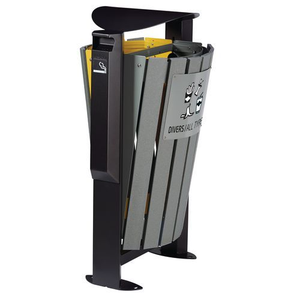 Ideaal voor stedelijke gebieden: straten, parken, parkeerplaatsen Afvalbak, zeer robuust, goed bestand tegen corrosie. Eenvoudig aanbrengen en uitnemen van de zak met behulp van een klembeugel. Te openen door de voorzijde naar voren te kantelen. Asbak 3 l geïntegreerd in de afvalbak. Op 4 punten op de grond te bevestigen. Let op: afvalbak is compatibel met de zakken van 110 l.