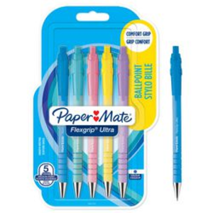 Papermate balpen FlexGrip Ultra. Clip: ja. Kleur behuizing: pastel. Kleur: multikleur. Diepte: 16 mm. Uitwisbaar: . Hoogte: 19401 mm. Bij de levering inbegrepen: 5 x balpen. Inktkleur: blauw. Inkttype: inkt op waterbasis. Lijndikte: 1 mm. Lijndikte: 1 mm. Model: Papermate FlexGrip Ultra. Penpuntgrootte: 1 mm. Penpunttype: balpen. Penpuntbreedte: medium. Productlijn: FlexGrip Ultra. Producttype: balpen. Navulbaar: . Intrekbaar: ja. Geschikt voor: kantoor en thuis. Geschikt voor linkshandigen: ja. Gewicht: 34 g. Breedte: 1199 mm.