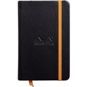 Notitieboek Rhodia 118642C. Model: 118642C. Paginas per blok: 96. Perforatie: niet geperforeerd. Liniatuur: gelinieerd. Papiergewicht: 90 g/m². Formaat: A6 staand. Binding: gestikt. Uitwisbaar: nee. Omslag_Type: hardback. Marge: nee. Diepte: 19. Hoogte: 147. Breedte: 91. Gerecycled_Percentage: 0.18. Gewicht: 162. Gerecycled_Percentage Karton: 0.18. Materiaal bekleding: PU. Kleur: zwart.