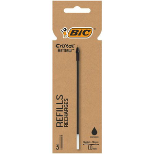 Bravo BIC! U heeft ongeveer 3 km geschreven en u bent erin geslaagd de pen BIC Cristal Re'New op te gebruiken. Het is tijd om hem opnieuw te vullen met BIC inktpatronen die speciaal voor uw balpen ontworpen zijn, om u de schrijfkwaliteit en de functionaliteit te geven die u van BIC producten verwacht. Dit pakket bevat 3 navullingen met blauwe inkt, ook leverbaar in zwart. De medium punt van 1,0 mm is geschikt voor alle toepassingen: van aantekeningen maken tot tekenen, sudoku’s maken en nog veel meer.