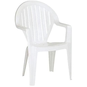 Tuinstoel, Zitting materiaal: Polypropyleen, Rugleuning materiaal: Polypropyleen, Totale breedte: 59 cm, Type stoel: Fauteuil, Zitting kleur: Wit, Rug kleur: Wit, Zithoogte: 43 cm, Type onderstel: 4 poten, Type voet: Stoeldoppen, Totale hoogte: 91 cm, Gewicht: 2.9 kg, Stapelbaar: ja, Gebruik: Collectiviteit, Totale diepte: 58 cm