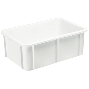 Stapelbare rechthoekige bak, Totale inhoud: 35 L, Totale hoogte: 215 mm, Totale breedte: 390 mm, Totale lengte: 590 mm, Bak kleur: Wit, Type bodem: Gesloten, Type zijkant: Gesloten, Materiaal: Polyethyleen van hoge dichtheid, Stapelbaar: ja, Nuttige breedte: 345 mm, Recyclebare verpakking: Ja - 100%, Recyclebaar product: Ja - 100%, Gewicht: 1.65 kg, Nuttige diepte: 210 mm, Min. gebruikstemperatuur: -40 °C, Max. gebruikstemperatuur: 90 °C, Nuttige hoogte: 210 mm, Nuttige lengte: 535 mm, Gebruik voor voedsel: ja
