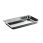 Rvs. Speciaal voor bereiding op hoge temperatuur. Handgrepen op de brede zijden.