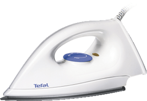 Tefal droogstrijkijzer, wit/blauw, aansluitwaarde 1200W, gewicht 0.8kg, snoerlengte 1.8m, zool van strijkijzer kunststofgecoate zool