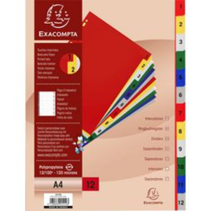 Exacompta Numerieke tabbladen A4 Kleurenassortiment 6 tabs 11-gaats polypropyleen 1 tot 12