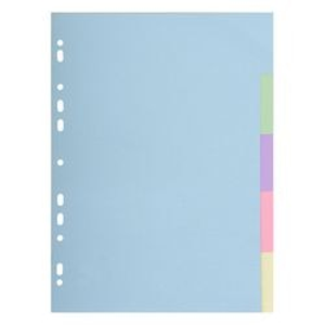 Europa tabbladen 1605E. Formaat: A4. Afmetingen: 210 x 297 mm. Gewicht: 300 gsm. Kleur: assorti pastel. Hoeveelheid: pak 5 stuks.