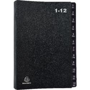 Exacompta sorteermap 57012E. Materiaal: karton. Aantal tabbladen: 12. Formaat: A4. Labelruimte: Aantal compartimenten: 12. Kleur: zwart.