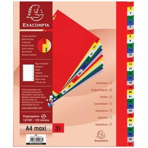 Tabblad in gekleurd PP - 1-31 - A4 MAXI - Exacompta
