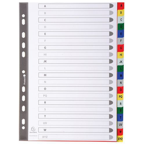Tabblad 20 st. bedrukte tabs gekleurd pp 20 tabs A tot Z A4, Aantal tabs: 20, Voor formaat: 210 x 297 mm (A4), Materiaal: Polypropyleen, Recyclebaar product: Ja - 100%