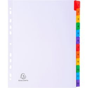Exacompta tabbladen 4112E. Formaat: A4 maxi. Materiaal: polypropyleen. Aantal tabbladen: 12 tabs. Perforatie: geperforeerd. Tab type: 1 tot 12. Aantal: 20 stuks.