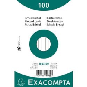 Exacompta Indexkaarten 10802X. 2. Number per UOM: 20. 3. Aantal Eenheid - enkelvoud: Stuk. 3. Aantal Eenheid - meervoud: Stuks. 4. Inhoud: 100. 5. Inhoud Eenheid: Vellen. Basis productkleur: Wit. Beschrijfbaar: Ja. Breedte: 100 mm. Diepte: 150 mm. Formaat: A6. Gewicht: 300 g. Gewicht (g/m²): 205 g/m². Hoogte: 23 mm. Kleur: Wit. Liniatuur: Gelinieerd. Materiaal: Papier. Merk: Exacompta. Model: 10802X. Producttype: Indexkaarten.